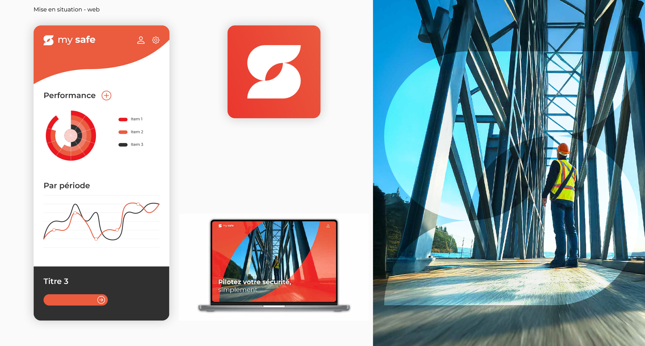 La forme en son centre bien que géométrique est plus organique. Elle connote la nature et le côté humain et se veux rassurante et chaleureuse par contraste au reste des figures utilisées.