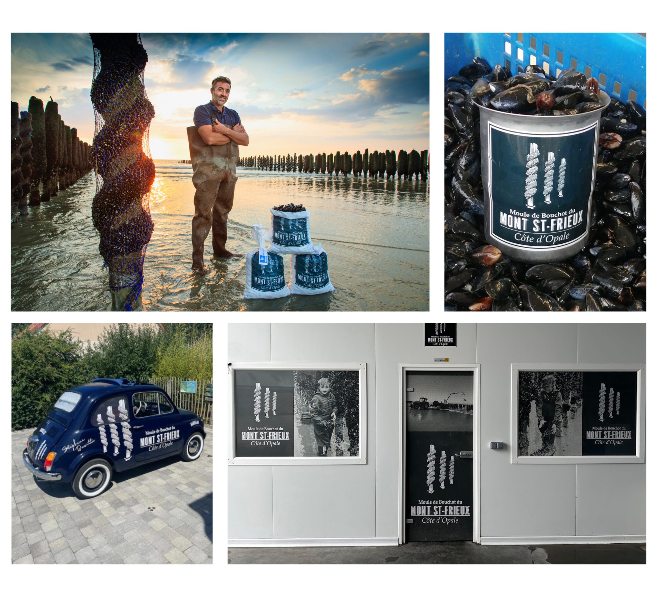 Le logo Les 3 bouchots Recherche graphique pour la marque « Moule de bouchot du Mont-St-Frieux » sur la Côte d’Opale. Les différentes propositions du logo